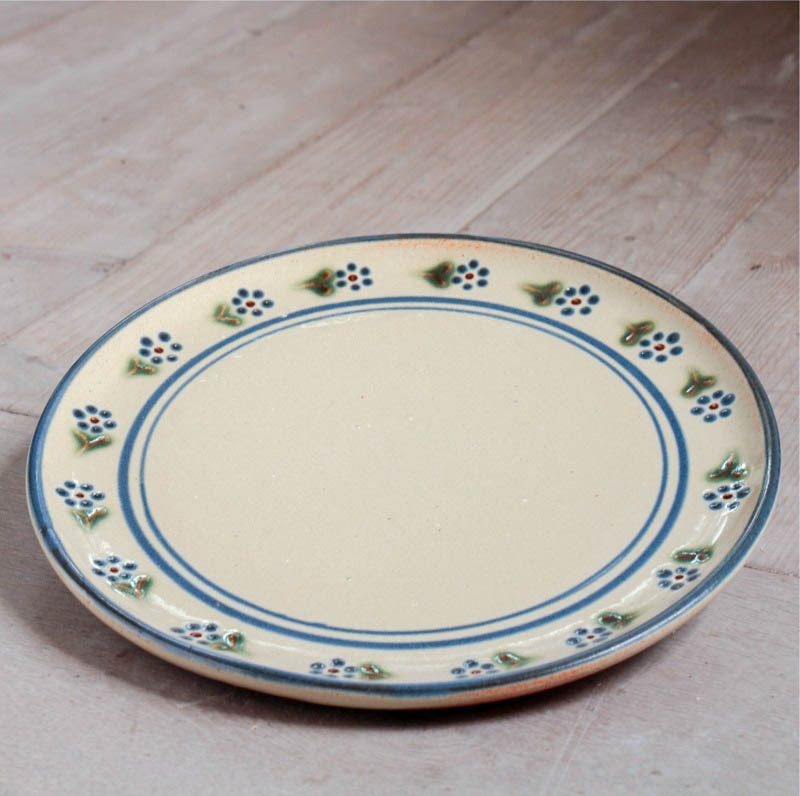 Der Teller für die Brotzeit, Frühstück, Salat, Beilagen usw. Er ist besonders flach und hat nur einen kleinen Rand.