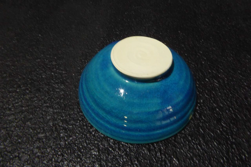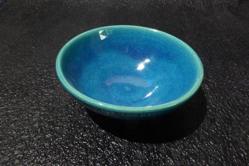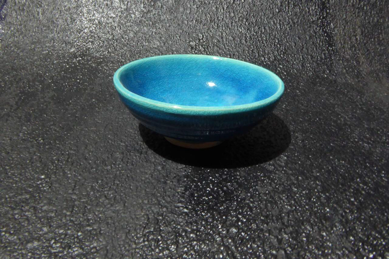 tuerkise Schüssel, aegyptischblau, bauchig, ca.7cm hoch,Durchmesser oben 15,5cm. Martin Waubke hat sie hergestellt